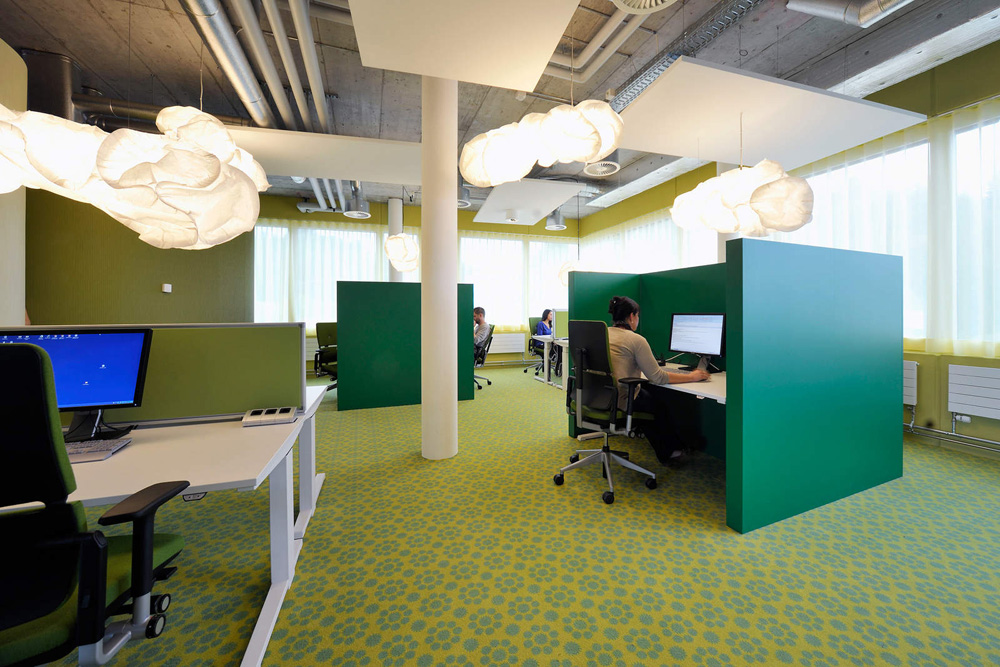 走進這里的工作人員容易被視覺元素里的歡快沖淡了上班的不良情緒轉(zhuǎn)而滿身能量,并且環(huán)境的舒適可以為工作效率加分。