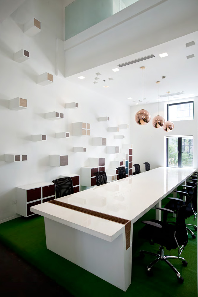 室內(nèi)環(huán)境的設(shè)計中,此次辦公室的設(shè)計主題是“在公園里工作-在辦公室玩樂”。