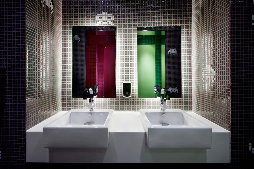 就連最細(xì)節(jié)處的衛(wèi)生間的墻面,也借鑒了法國著名藝術(shù)家的涂鴉風(fēng)格,將小時候的游戲機(jī)中的形象作為馬賽克的圖案,在任何一個地方都不遺余力的想要呈現(xiàn)愉悅的感覺。 在體現(xiàn)時尚和輕松的辦公環(huán)境氛圍的同時,設(shè)計師并沒有忘記辦公室所應(yīng)具有的功能和實用性,通過運用高科技,在很多處運用玻璃的隔墻和門,既創(chuàng)造了一個開放透明的空間,又更方便員工之間的交流。
