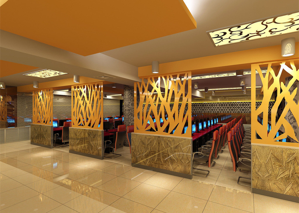 3、網(wǎng)吧線路的設(shè)計.網(wǎng)吧裝修設(shè)計的時候,線路走向成為許多設(shè)計師研究的問題,線路的走向包含了很多事情,首先要考慮網(wǎng)吧自身的安全,其次這些電線和網(wǎng)線出現(xiàn)會不會影響網(wǎng)吧的美感.這兩個問題都需要進行處理,所以線路除了隱蔽之外,還需要安全.如果有些線路沒有辦法隱藏的話,在設(shè)計的時候就需要進行一些美化,減少它的影響力.