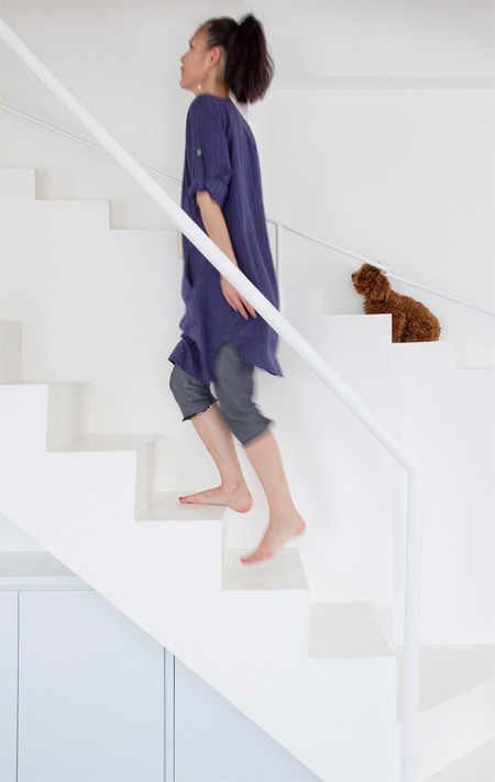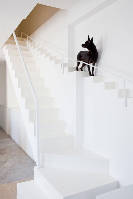 如果你家里也養(yǎng)寵物,或許這個設(shè)計能更吸引你。設(shè)計師07Beach為他的朋友量身打造了這款人寵雙用樓梯,更小的跨度和間距,更多的考慮了小型犬使用樓梯時的骨骼舒適性。當(dāng)然,前提是你得訓(xùn)練好你的狗狗走這條道,不然可就白費心思了。