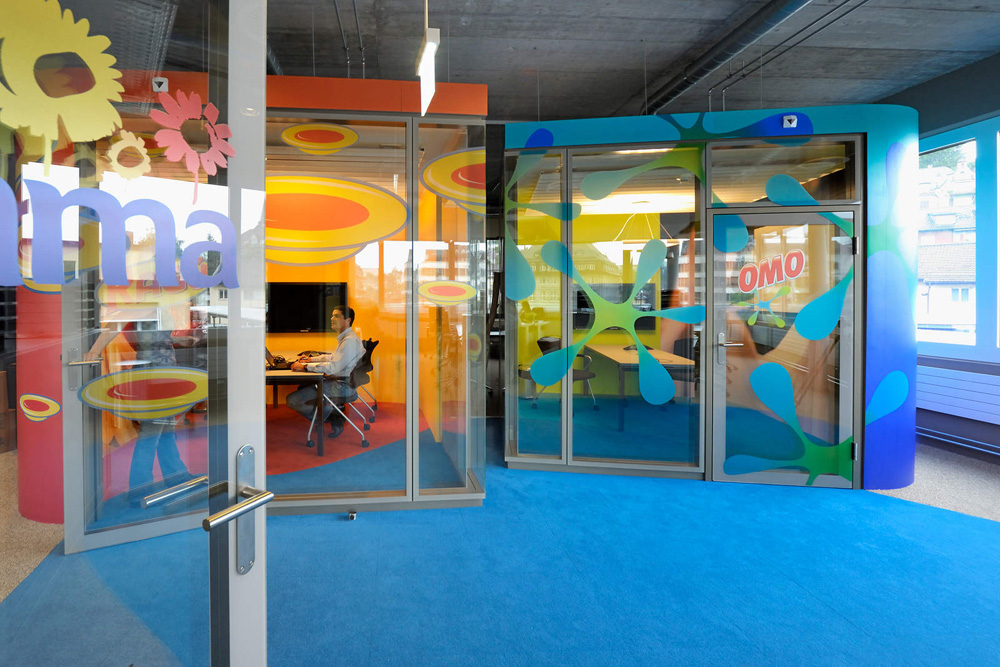 位于瑞士的聯(lián)合利華辦公室,就像天朝的兒童樂園,完全是大小孩理想中的夢(mèng)想空間。色彩的明麗跳躍與碰撞讓人全然忘乎這是個(gè)本該嚴(yán)肅莊重的辦公環(huán)境。